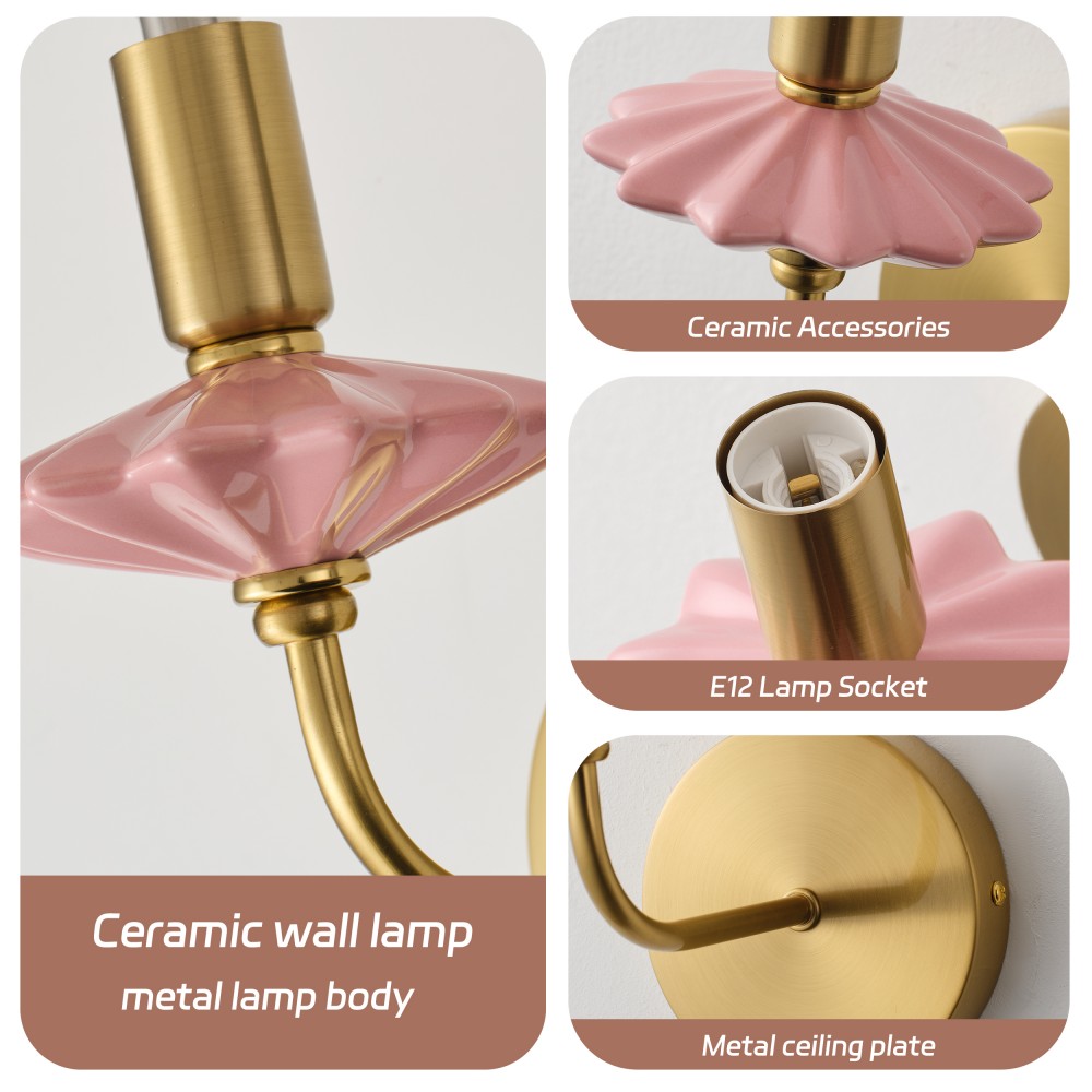 Pehmeästä vaaleanpunaisesta keramiikasta ja monikerroksisesta kullatusta laitteistosta valmistettu kylpyhuoneen seinävalaisin yhdistää klassisen kynttilän muodon moderniin kevyeen luksustyyliin, vahvan valaistuksen mestariteos, jossa yhdistyvät keraamiset ja metalliset materiaalit. Keraamiset osat on käsitelty korkean lämpötilan lasituksella, joka on sileä kosketus ja haalistumiskestävyys, kun taas kullatuilla laitteistoilla on erinomainen hapettumisenkestävyys, joka sopii pitkäaikaiseen käyttöön myös kosteissa kylpyhuoneympäristöissä rannikkoalueilla. E12-kantalla varustettu se on yhteensopiva perinteisten ja LED-polttimoiden kanssa ja tukee enintään 40 W:n tehoa lamppua kohden. Lämmintä ja viileää valkoista valoa voidaan vapaasti kytkeä luomaan erilaisia tunnelmia, mitoiltaan L200xL110xK210 MM, sen kompakti suhde sopii erilaisiin sisäseiniin.